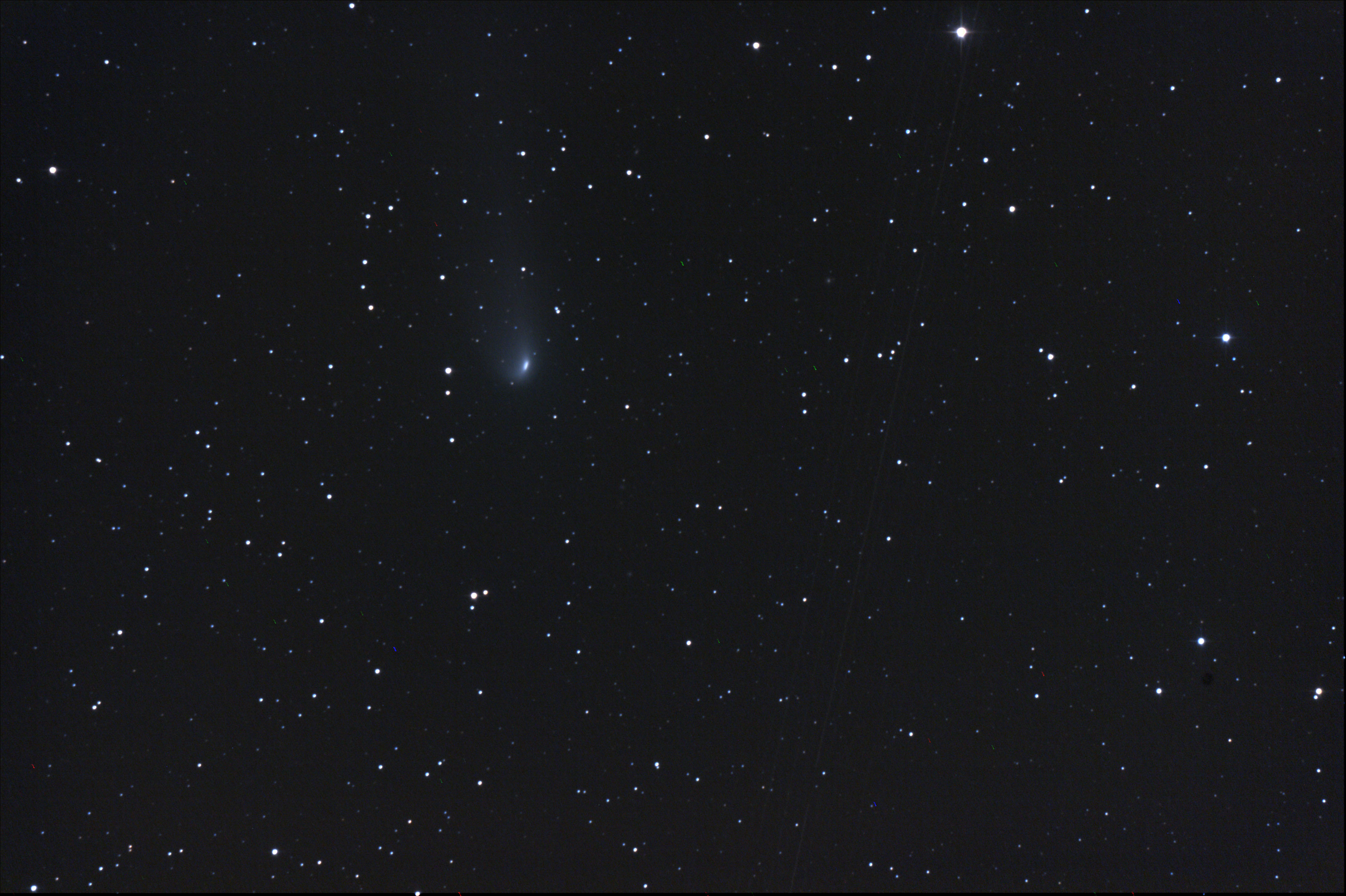 Mit DeepSkyStacker auf Kometenkern gestackt und mit Fitswork geebnet und Histogramm angepasst.