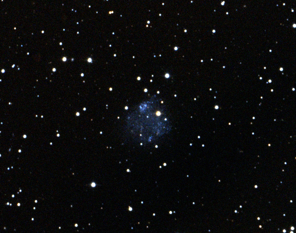 15x900s Flat- und Biaskorrigiert Gain 20 Offset 119 Das Bild zeigt einen Ausschnitt, da ich durch die recht tiefe Lage mit Gradienten zu kämpfen hatte. Für mehr Details braucht man wohl noch einiges mehr an Belichtungszeit und Brennweite.