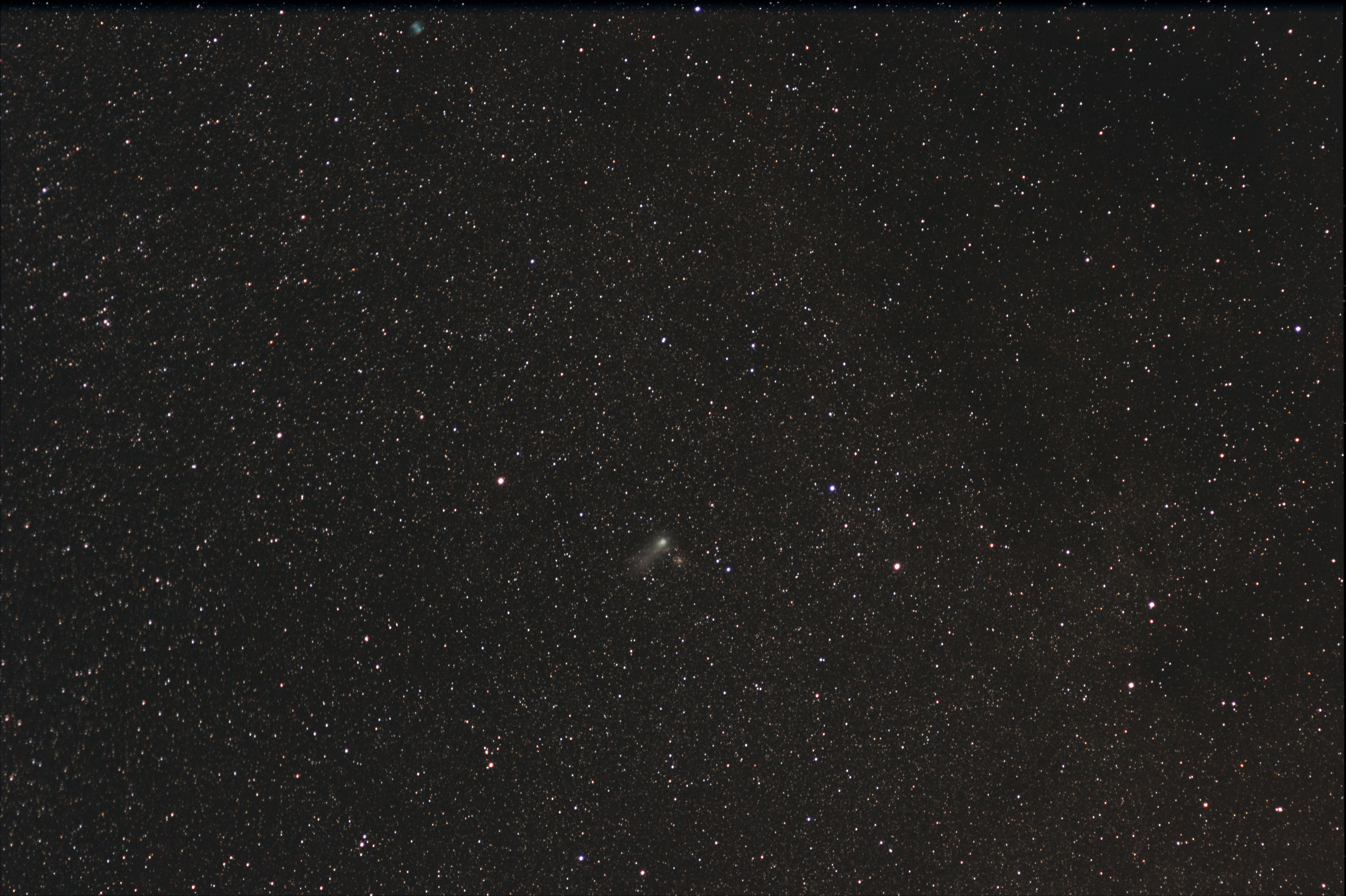 Ein Bild mit DeepSkyStacker auf Sterne, eins auf Kometen ausgerichtet und selektiv zusammen kopiert.