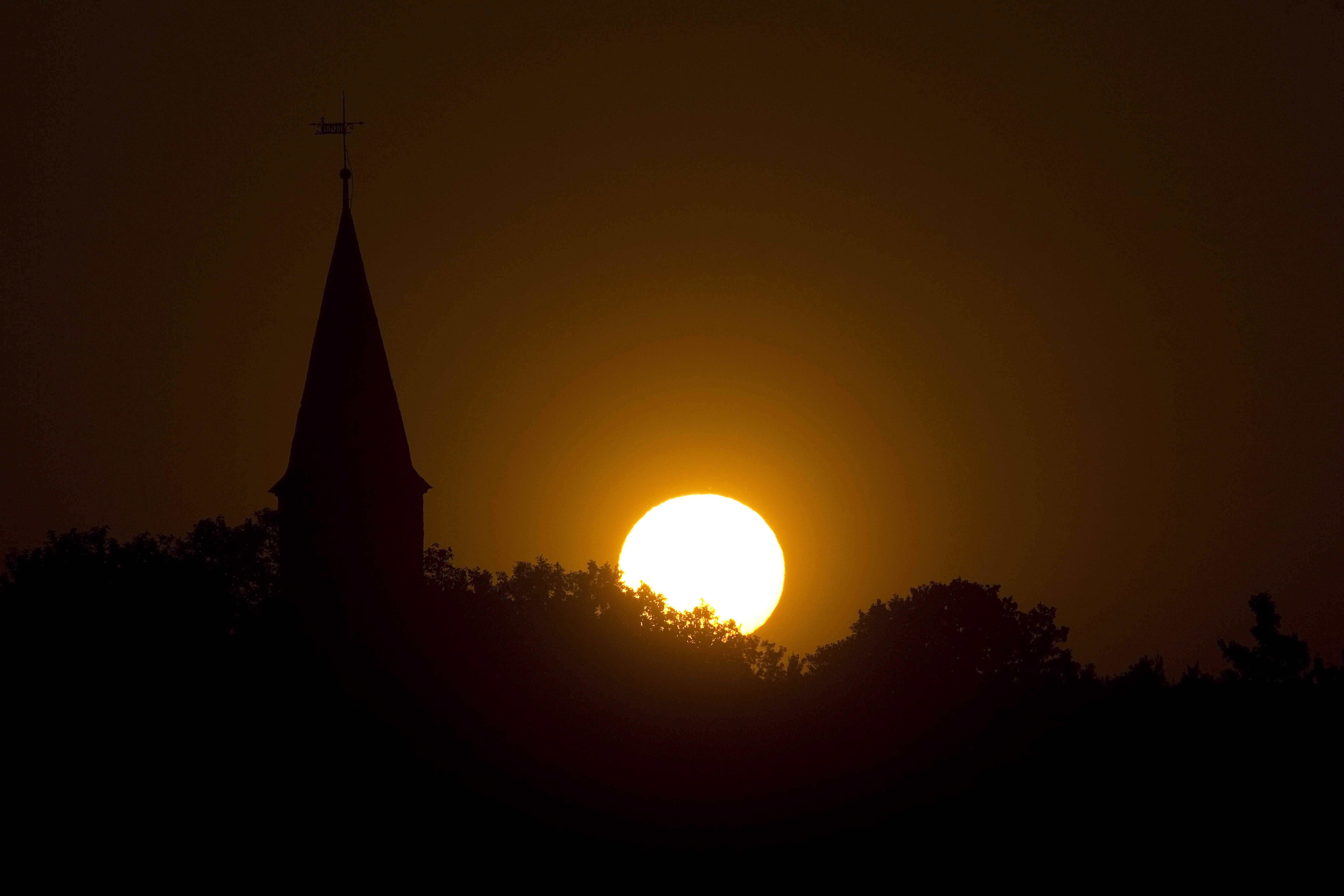 Sonnenuntergang hinter dem Wilschdorfer Kirchturm