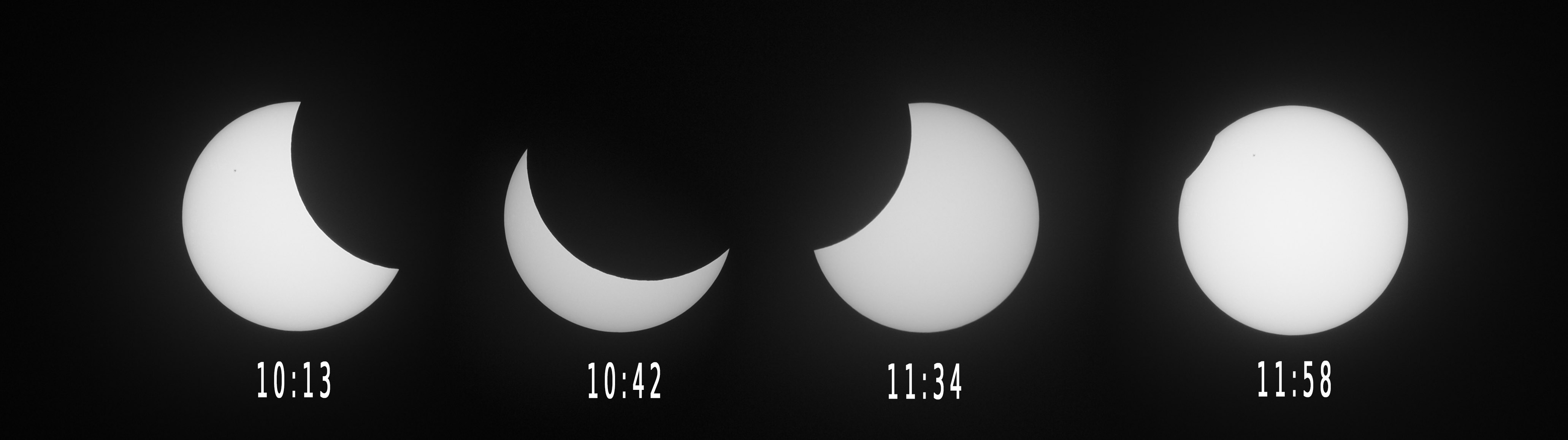 Ca +- 20 Minuten um das Maximum herum hat man die geänderten Lichtverhältnisse deutlich wahrgenommen. Dabei erschienen die Farben im Park etwas flau und auch auf den Schwarzen Klamotten spürte man deutlich die fehlende Wärmestrahlung. Aus den Zeitrafferaufnahmen eines Freundes, der uns während der gesamten Zeit mit fest eingestellten Kameraeinstellungen aufnahm, konnte ich eine Lichtkurve erstellen. Dabei wurde der Mittelwert bzw. der Median aus allen Pixelwerten pro Bild berechnet und in einen Graph eingetragen (Bild #3). Der Intensitätsabfall ist auf den Aufnahmen sowie im Graphen deutlich erkennbar.